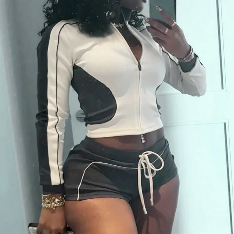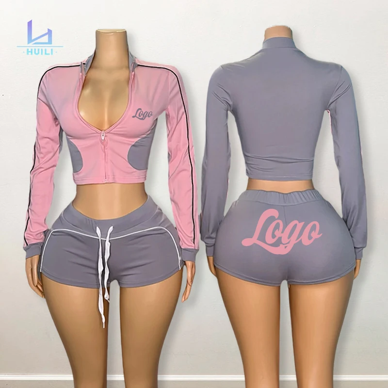 Huili Custom Logo High Quality Zipper Slimming Sheapewear Women's Yoga Fitness Knitted High Stretch Sports Shorts Set Activewear